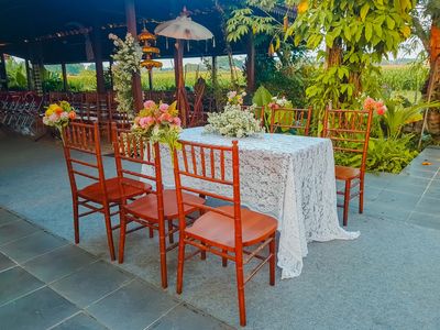 Chairs are more than a seating solution — they’re a key part of your ceremony and reception aesthetic. We offer a variety of elegant options, including: